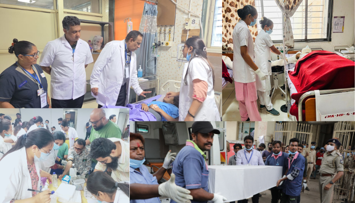 ઈજાગ્રસ્તોની સારવાર માટે અમદાવાદ સિવિલ હોસ્પિટલમાં (Ahmedabad Civil Hospital) ડોક્ટરો અને પેરામેડિકલ ટીમ ખડે પગે રહ્યા હતા અને ઈજાગ્રસ્તોની સારવાર સુશ્રૂષા આરોગ્યપ્રધાન ઋષિકેશ પટેલના સીધા માર્ગદર્શનમાં શરૂ કરી હતી.