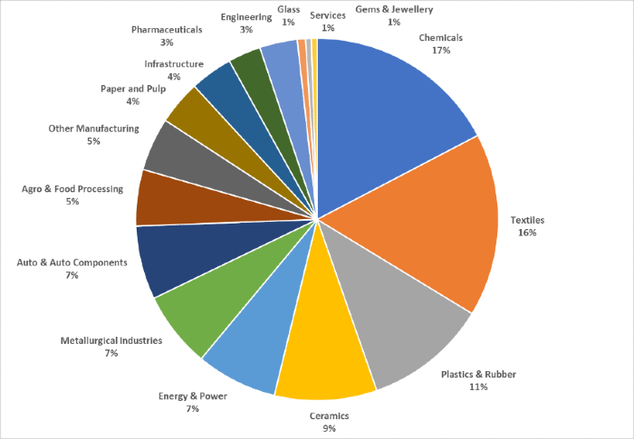 2. Industrial Machinery & equipment 3. Auto & Auto Components 4. Ceramics 5. Technical Textiles 6. Agro & Food Processing 7. Pharmaceuticals & Medical devices 8. Gems & Jewelry 9. Chemicals (in designated area) |
