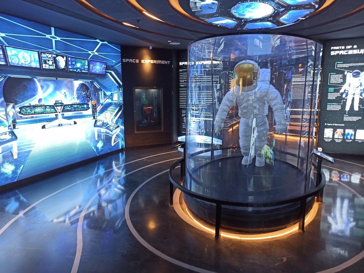 અત્રે ઉલ્લખનીય છે કે, કુલ 12,797 ચોરસ મીટરના વિસ્તારમાં આવેલી આ ગેલેરીમાં મધ્યમાં સૂર્યનું પ્રતિનિધિત્વ કરતો, ત્રણ માળ જેટલો ઊંચો વિશાળ ગ્લોબ આવેલો છે, જેની ફરતે અન્ય ગ્રહોની ગોઠવણ પણ જોઈ શકાય છે. ત્રણ માળની બનેલી આ ગેલેરીમાં છ મુખ્ય વિભાગો આવેલા છે. આ સાથે ફંડામેન્ટલ્સ એન્ડ હિસ્ટ્રી વિભાગમાં 47 એક્ઝિબિટ્સ મૂકવામાં આવ્યા છે, જે એસ્ટ્રોનોમીના મૂળ સિદ્ધાંતો અને તેના ઇતિહાસની માહિતી આપે છે.