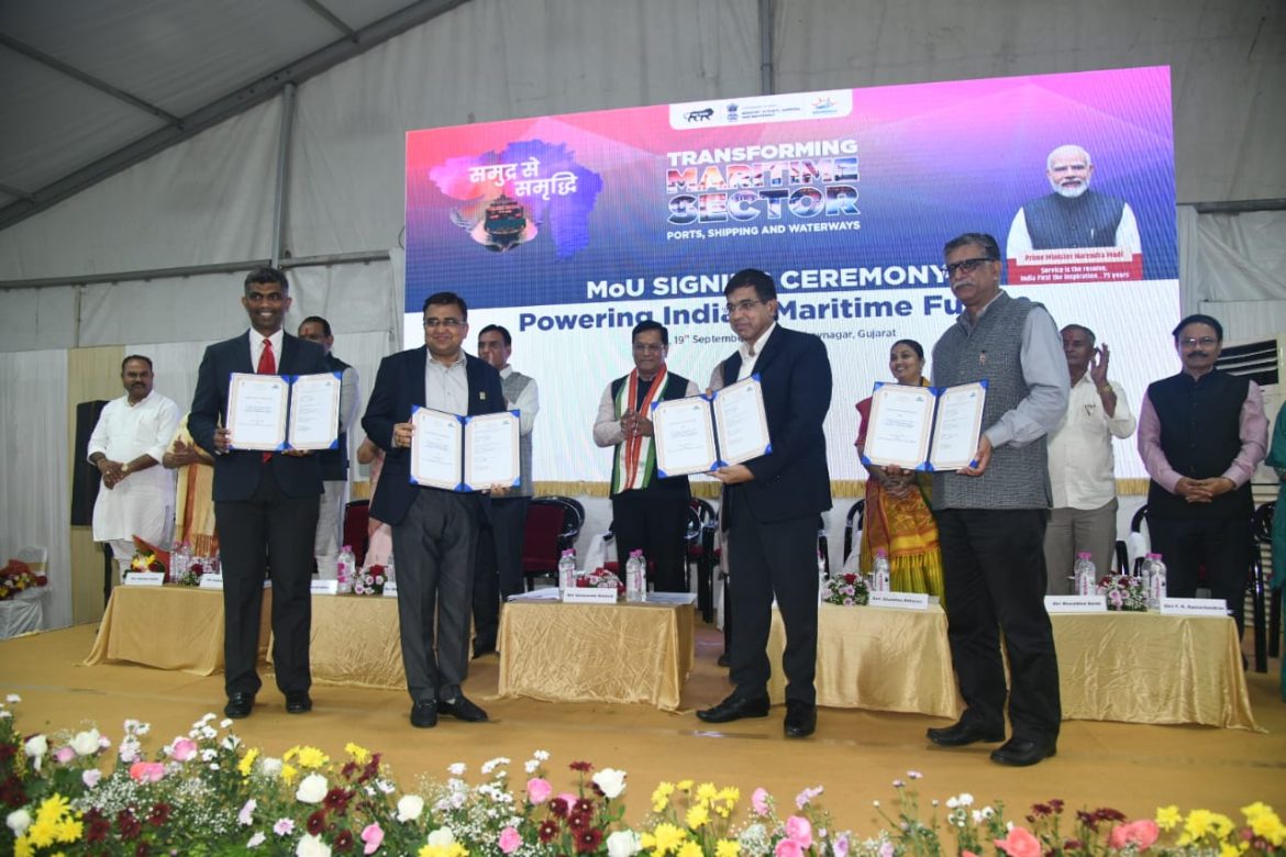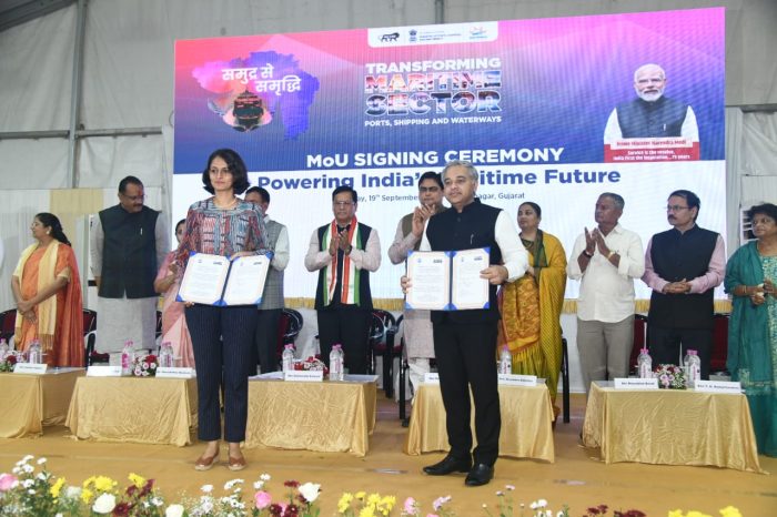 ભાવનગર- વડાપ્રધાન નરેન્દ્ર મોદી આવતીકાલે 20 સપ્ટેમ્બર, 2025ને શનિવારે ગુજરાતની ભાવનગરની ધરતી પરથી અનેક વિકાસ કાર્યો દેશને સમર્પિત કરવાના છે, ત્યારે તે અગાઉના દિવસે સામુદ્રિક ક્ષેત્રે વિકાસની ગતિ તેજ કરવા માટે શીપ બિલ્ડીંગ, પોર્ટ યાર્ડ અને મેરિટાઈમ ક્ષેત્રનો વિકાસ કરવા માટે વિવિધ હિતધારકો વચ્ચે 27 પ્રકારના MOU આજે શુક્રવારે કેન્દ્રીય પ્રધાનોની ઉપસ્થિતિમાં સંપન્ન થયા હતાં.(27 MoUs were signed in Bhavnagar for maritime)