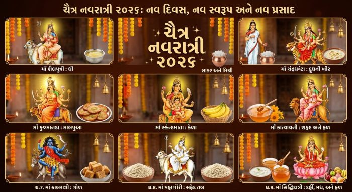 અમદાવાદ- Chaitra Navratri 2026 હિન્દુ ધર્મમાં ચૈત્ર નવરાત્રીનું વિશેષ આધ્યાત્મિક મહત્વ છે. વર્ષ 2026 મા શરૂ થઈ રહેલા આ પવિત્ર પર્વ દરમિયાન ભક્તો મા દુર્ગાના નવ અલગ-અલગ સ્વરૂપોની આરાધના કરવામાં આવશે. શાસ્ત્રોક્ત માન્યતા મુજબ, જો નવરાત્રીના દરેક દિવસે માતાજીના સ્વરૂપ મુજબ ખાસ ‘ભોગ’ અર્પણ કરવામાં આવે, તો માતાજીના આશીર્વાદ જલ્દી પ્રાપ્ત થાય છે અને જીવનમાં સુખ-શાંતિ પ્રાપ્ત થાય છે.