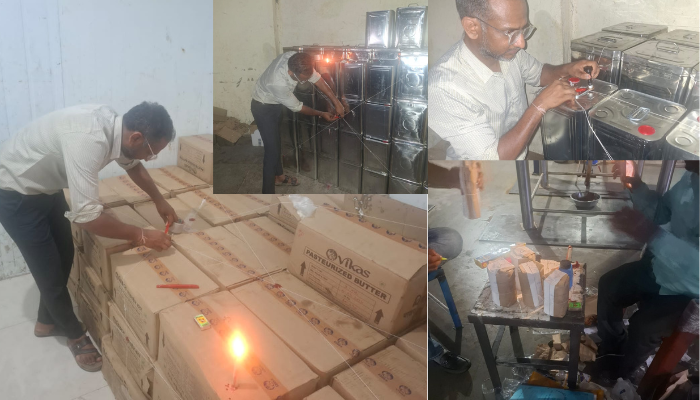 સત્તાવાર માહિતી અનુસાર ખોરાક અને ઔષધ નિયમન તંત્ર, (Gujarat Food and Drug Regulatory Authority) સુરેન્દ્રનગર અને જિલ્લા પુરવઠા અધિકારી દ્વારા તા. 03-06-2025ના દિવસે મે. શિવ ઇન્ડસ્ટ્રીઝ, સર્વે નંબર: 75-21 ચોટીલા રોડ, મુ. ગુગલીયાના, તા: થાનગઢ, જિ. સુરેન્દ્રનગરમાં સંયુક્ત તપાસ કરવામાં આવી હતી, જેમાં સ્થળ પર પેઢી ના જવાબદાર રાજેશભાઇ ભરતભાઇ ચાવડાને હાજર રહ્યા હતા અને તેઓએ લાઈસન્સ ની નકલ રજૂ કરી હતી. સ્થળ પર રહેલ જથ્થા વિશે પૂછપરછ કરતા વેપારીએ હાલમાં પેઢીમાં તૈયાર કરેલ ઘી (શ્રી ભોગ બ્રાન્ડ), લુઝ ઘી, ઘી બનાવવા માટેના બટર તેમજ રીફાઇન્ડ પામોલીન ઓઇલ હાજરમાં હોવાનું સ્વીકાર્યું હતું. જે ખાદ્યચીજ ઘીમાં પ્રાથમિક દ્રષ્ટીએ ભેળસેળની શંકા જતા તંત્ર દ્રારા કાયદા હેઠળની કાર્યવાહી કરતાં રાજેશભાઇ ભરતભાઇ ચાવડાની હાજરીમાં ઘી સહિત અન્ય ખાદ્યચીજના એમ કૂલ ચાર નમુના લેવામાં આવ્યા હતા.