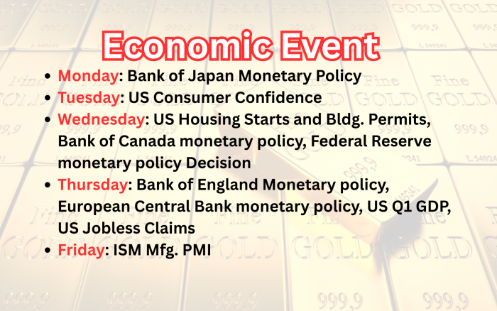 (7) આગામી સપ્તાહે ફેડરલ ઓપન માર્કેટ કમિટીની બેઠક 28 અને 29 એપ્રિલે મળનાર છે. આ ફેડરલ રીઝર્વ બેઠકમાં ફેડ રેટ યથાવત રહે તેવી પુરી સંભાવના છે. પણ સાથે મોંઘવારીના સંદર્ભે શું અનુમાન રજૂ થાય છે, તેના પર નજર રાખવી જરૂરી છે.
