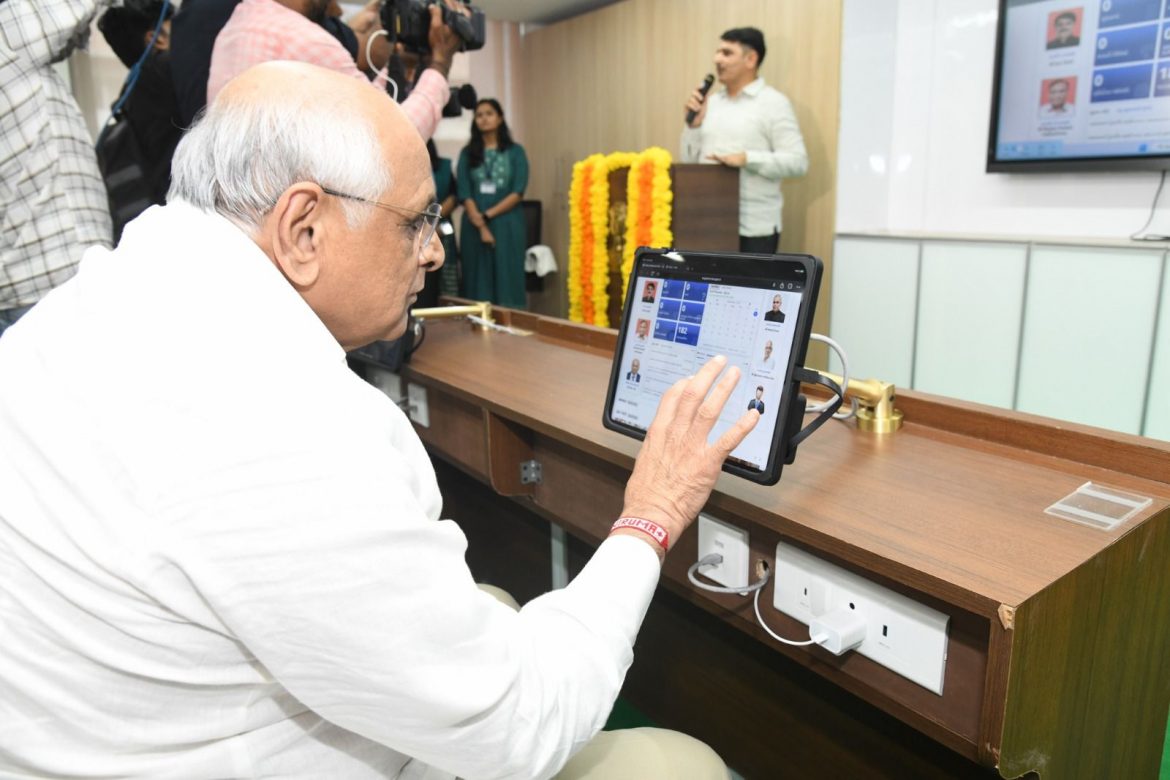 મુખ્યપ્રધાને નેશનલ ઇ-વિધાન એપ્લિકેશન થકી થનાર અલગ અલગ કામગીરીની બારીકાઇથી માહિતી મેળવી હતી. ઉપરાંત આ એપ્લિકેશન મારફતે વિધાનસભા કાર્યવાહી સંલગ્ન વોટીંગ, એલ.એ.ક્યુ સહિતની વિવિધ પ્રક્રિયા કેવી રીતે કરવી તેની જાણકારી પણ મેળવી હતી.
