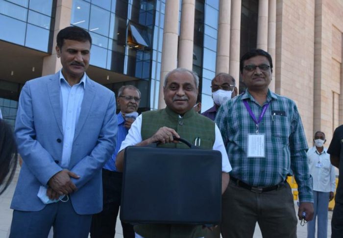 નાણાપ્રધાન નીતિનભાઈ પટેલે આજે સતત નવમી વખત ગુજરાત વિધાનસભા ગૃહમાં વર્ષ 2021-22 માટે બજેટ રજૂ કર્યું છે. કરબોજ વિનાનું બજેટ રજૂ કર્યું છે. કોરોના મહામારીના વર્ષમાં પણ કોઈ રાહત ન આપી. નીતિન પટેલે રજૂ કરેલ બજેટ રૂપિયા 2,27,029 કરોડના કદનું અત્યાર સુધીનું સૌથી મોટુ બજેટ છે અને આ બજેટ રૂપિયા 587.88 કરોડની પુરાંતવાળુ બજેટ રજૂ કરીને આશ્ચર્ય સર્જયું છે.