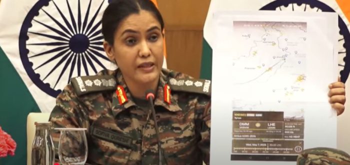 કર્નલ સોફિયા કુરેશીએ પાકિસ્તાનની પોલ ખોલતો એક ફોટો દેખાડ્યો હતો. અને કહ્યું કે પાકિસ્તાનના હૂમલા દરમિયાન નાગરિક વિમાનને ઢાલના રૂપમાં ઉપયોગ કરીને શરમજનક રીતથી કોશિશ કરી હતી. પાકિસ્તાને હવાઈ ક્ષેત્ર બંધ કર્યું છે. પણ તેને તે ઢાલ બનાવીને ઉપયોગ કરી રહ્યું છે. જ્યારે આ હૂમલો થયો ત્યારે કરાચી અને લાહૈર જેવા મોટા શહેરોમાં પેસેન્જર પ્લેન ઉડાન ભરી રહ્યા હતા. ત્યારે આમ નાગરિકોના જીવ જોખમમાં નાખ્યા હતા. તે ઈન્ટરનેશનલ ફ્લાઈટ્સ સહિત તમામ ઉડાનોમાં ટ્રાવેલ કરનારા નાગરિકો માટે ખતરનાક હતું. ભારતીય સુરક્ષા દળોએ પુરી કાર્યવાહી દરમિયાન સંયમ દાખવ્યો હતો. અને જવાબી હૂમલા સીમિત કરી નાંખ્યા હતા. જેથી આમ નાગરિકોને કોઈ નુકસાન ન થાય. આ રક્ષણાત્મક અને સંવેદનશીલ રૂખની આંતરરાષ્ટ્રીય સ્તર પર વખાણ થઈ રહ્યા છે. ભારતે પાકિસ્તાનને ચેતવણી આપી કહ્યું કે આવી કાયરતાપૂર્ણ કાર્યનો અમે આકરો જવાબ આપીશું.