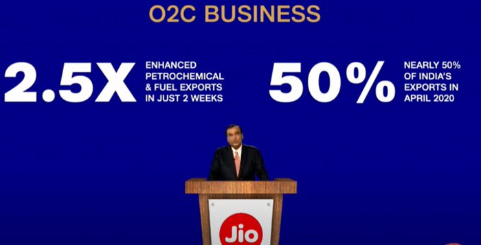 લોકડાઉનના સમયમાં કંપનીએ તેની પેટ્રોકેમિકલ અને ઇંધણની નિકાસ માત્ર બે જ અઠવાડિયામાં અઢી ગણી વધારી દીધી હતી. મને એ જણાવતાં ગર્વ થાય છે કે, એપ્રિલ 2020માં આપણો ઓ2સી વ્યવસાય ભારતની કુલ નિકાસમાં 50 ટકા હિસ્સો ધરાવતો હતો.