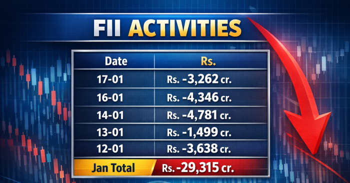 (1) ગ્લોબલ માર્કેટના નેગેટિવ સંકેત હતા. યુએસ પ્રેસિડેન્ટ ટ્રમ્પના ટેરિફ વોરને કારણે વિશ્વના દેશોની ટ્રેડ ઓફ બેલેન્સની સ્થિતિ બગડી છે. તેમજ ટ્ર્મ્પ ઈરાન પર ગમે ત્યારે હૂમલો કરી શકે છે. તેમજ ગ્રીનલેન્ડ ખરીદવાની વાત પર ટ્રમ્પ અડગ રહ્યા છે, તેઓએ યુરોપને સાથ આપવા કહ્યું હતું. પણ યુરોપના દેશોએ સાથ નથી આપ્યો, જેથી ટ્રમ્પે યુરોપિયન દેશો પર 10 ટકા ટેરિફ લાદ્યો છે. તેમજ ટ્ર્મ્પે અમેરિકાનો નવો નકશો જાહેર કર્યો છે. તેમાં કેનેડા, વેનેઝુએલા અને ગ્રીનલેન્ડને અમેરિકાના હિસ્સા ગણાવ્યા છે. આ બધા સમાચારને પગલે યુરોપિયન અને એશિયાઈ સ્ટોક માર્કેટ ગબડ્યા હતા. ડાઉ જોન્સ ફ્યુચર 389 પોઈન્ટ માઈનસ હતો. આમ(Stock Market Crash) ભારતીય શેરબજારનું સેન્ટિમેન્ટ વધુ ખરડાયું હતું.