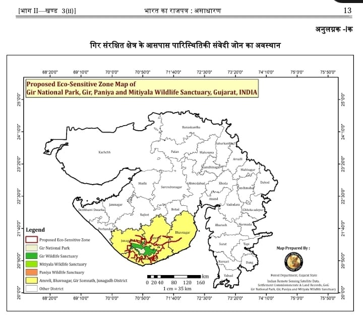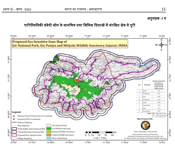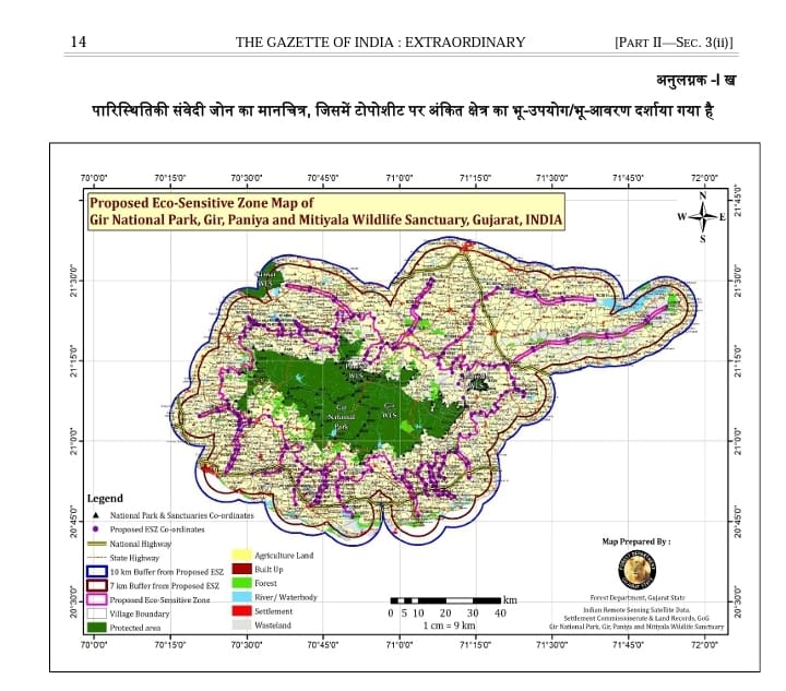 ‘ગીર રક્ષિત વિસ્તાર’ના આજુબાજુનો કુલ 1.84 લાખ હેક્ટર વિસ્તાર ‘ઇકો-સેન્સિટિવ ઝોન’ ઘોષિત કરવા જાહેરનામું પ્રસિદ્ધ